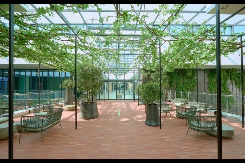 不同於那些將人與外界隔絕的傳統封閉式商場,現代名牌奧特萊斯 鬆島店選擇擁抱藍天。基於獨特的“花園奧特萊斯”理念設計,其建築風格複刻了歐洲廣場(Piazza)的鬆弛與優雅。寬闊且陽光充足的步行長廊兩側,綠植蔥郁,水景靈動,並設有充足的休憩區域。