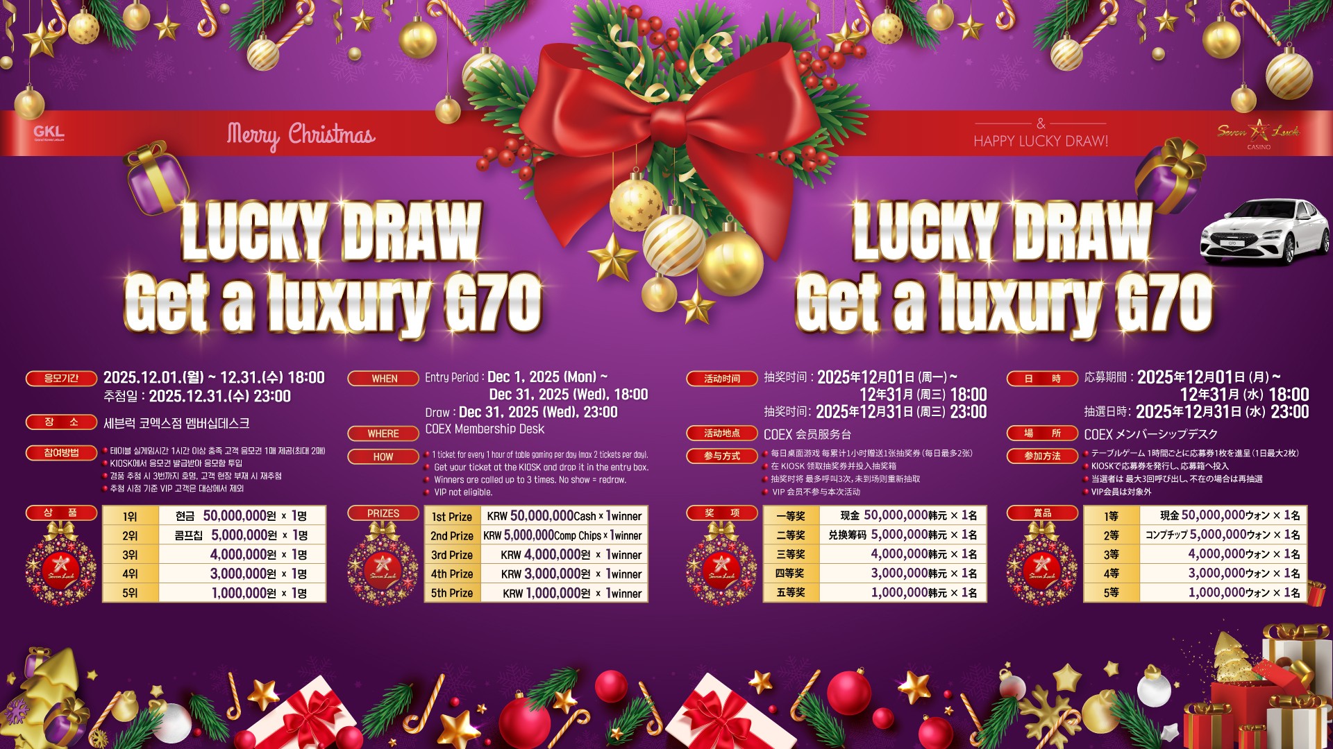 Coupons for the SEVEN LUCK CASINO in Busan Lotte are not valid for use in November and December 2023.